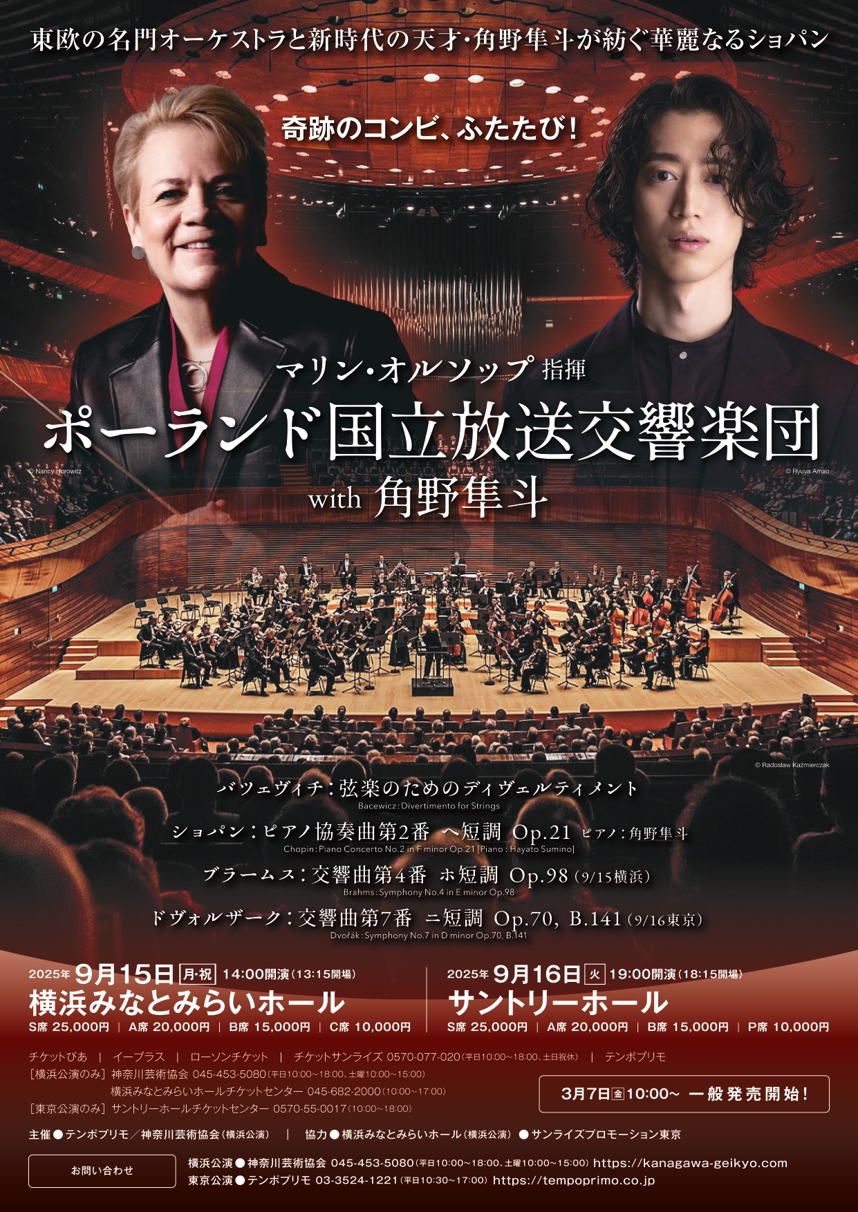 | 出演者 | 指揮:マリン・オルソップ ピアノ:角野隼斗 管弦楽:ポーランド国立放送交響楽団 |
