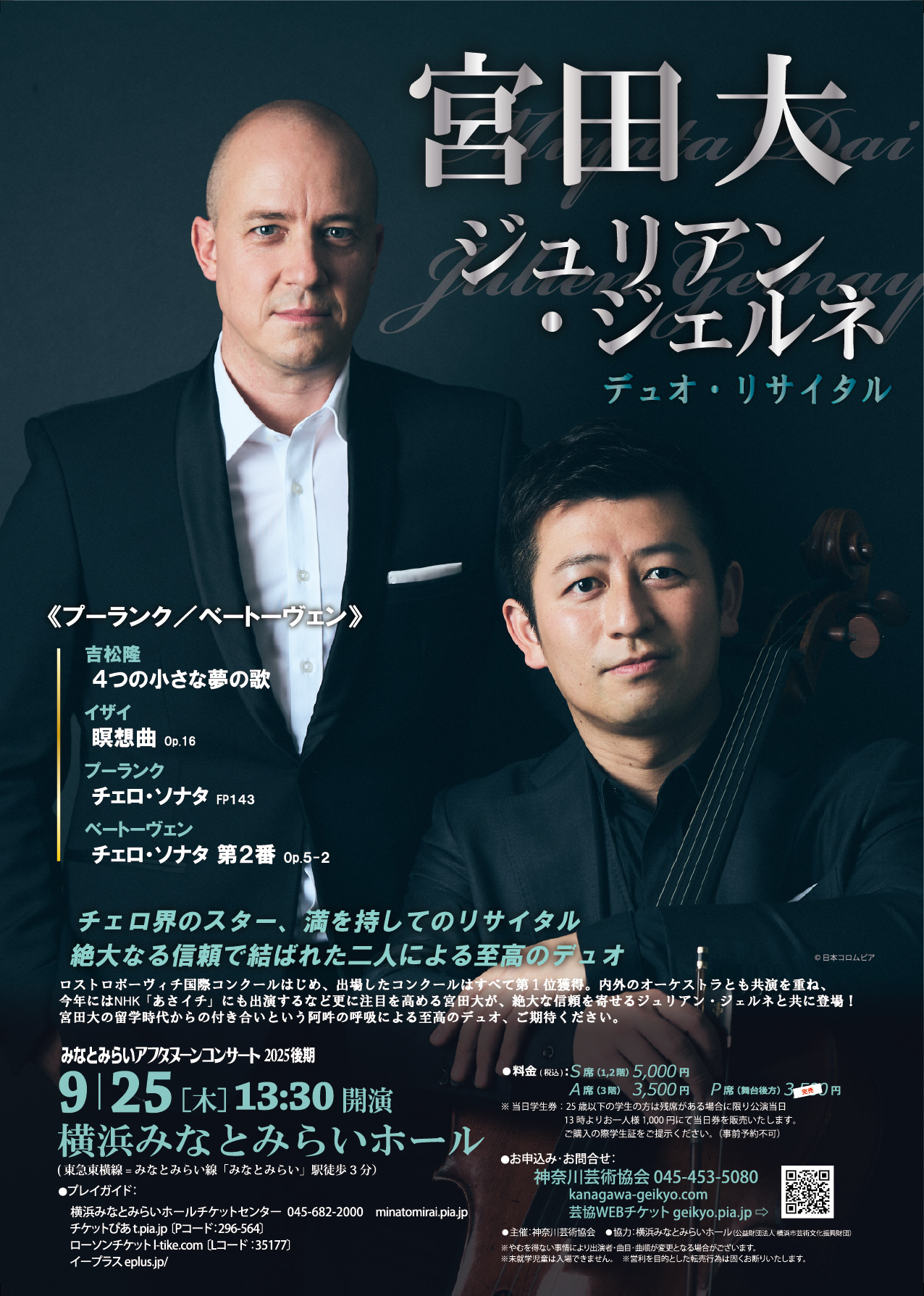| 出演者 | 宮田大(チェロ) ジュリアン・ジェルネ(ピアノ) |